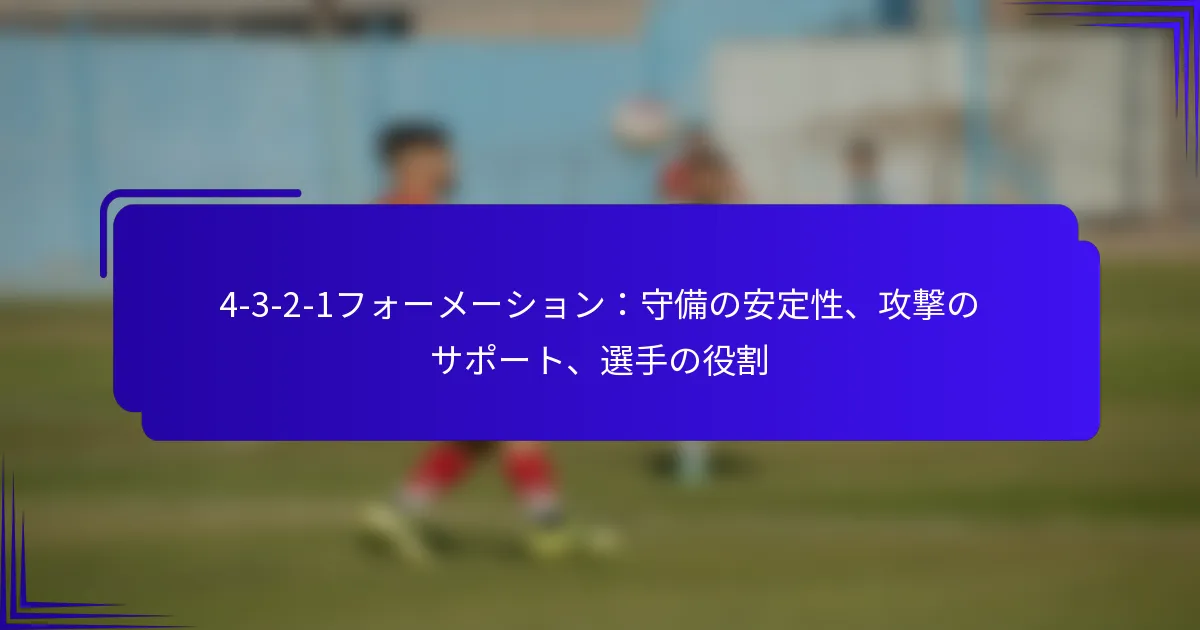 4-3-2-1フォーメーションは、サッカーにおける戦術的な配置で、4人のディフェンダー、3人のミッドフィルダー、2人の攻撃的ミッドフィルダー、1人のフォワードを特徴とし、守備の安定性と攻撃のサポートを組み合わせています。このフォーメーションは、相手に対するスペースを制限しつつ、攻撃への効果的な移行を促進するコンパクトな構造を作り出し、チームが選手の強みを活かして守備と攻撃の両方を行えるようにします。