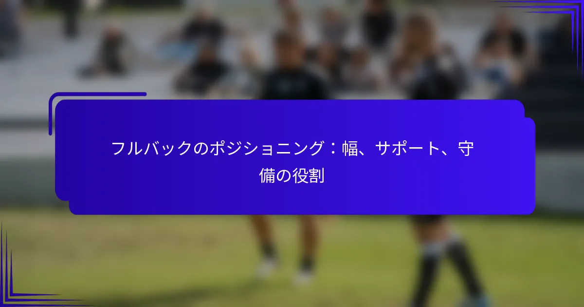 フルバックはフィールドの幅を最大限に活用するためにポジショニングし、攻撃プレーのためのスペースを作り、守備のサポートを提供する必要があります。このポジショニングは、チームの形を維持し、全体的な戦術的柔軟性を高めるために重要です。